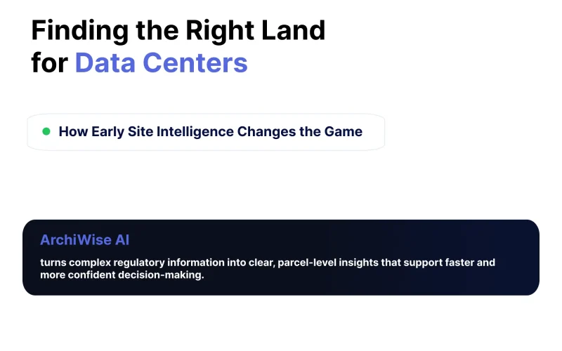 Data center development depends on a precise combination of infrastructure, regulatory approval, and site characteristics. Discover how early-stage site intelligence with ArchiWise helps developers identify viable locations before time and capital are committed.